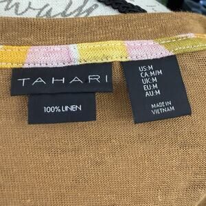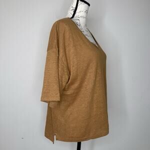Tahari Brown 100% Linen Short Sleeve Boxy V-Neck Top Medium