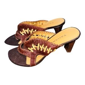 Tahari Brown Braided Sandals with Thong Design