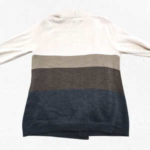 Tahari Brown Striped Wool Blend Open Front Cowl Neck Cardigan Sweater Size XL