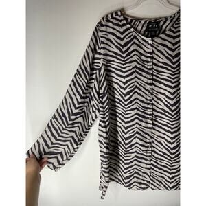 Tahari Brown White Zebra Print 100% Linen Long Sleeve Button Down Blouse Size 2X