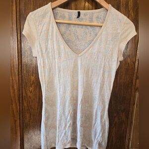 Tahari Burn Out V Neck T Shirt Semi Sheer Paisley XSMALL