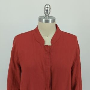 Tahari Button Front Linen Shirt Red Size Small coastal grandma coastalcore