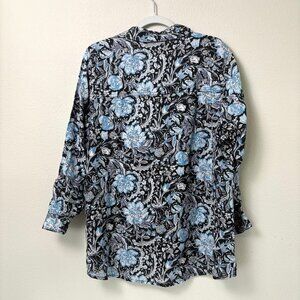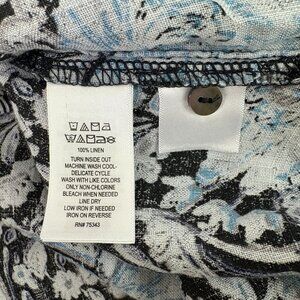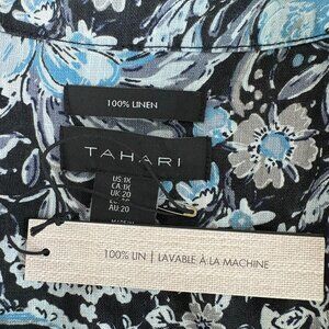 Tahari Button Front Top Plus 1X Blue Gray Floral 100% Linen Roll Tab Sleeve NWT