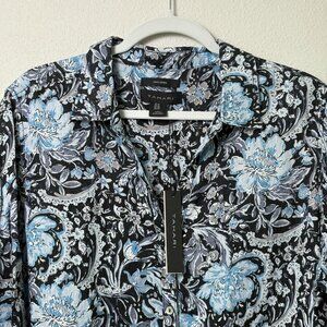 Tahari Button Front Top Plus Floral Roll Tab Sleeve NWT