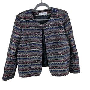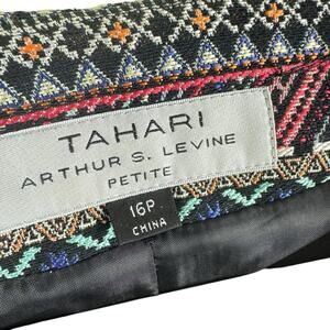 Tahari By ASL Funky Coloful Patterned Woven Lined Open Blazer Plus Size 16 P