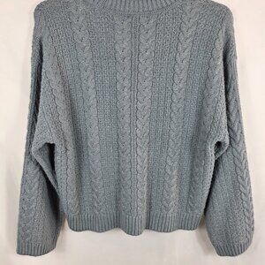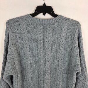 Tahari Cable Knit Crewneck Blue Sweater Women's Size Large