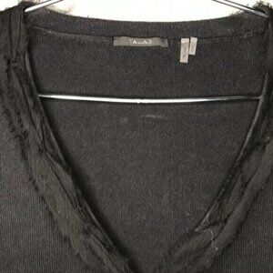 Tahari Cardigan Size Small Black V-Neck Knit Snap Front Ruffled