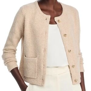 Stay cozy and stylish with this elegant Sand/Gold cardigan sweater. Perfect for layering, this sweater adds a touch of sophistication to an