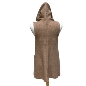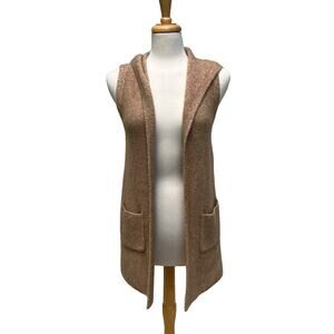 Tahari Cardigan Vest XS Wool Blend Open Sweater Tan Pockets Hooded Minimalist