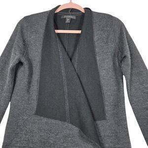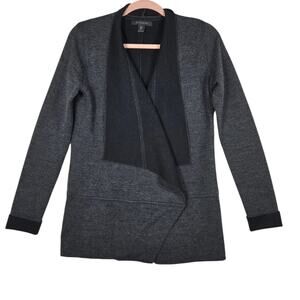 Tahari Cardigan Womens Small Gray Open Front Waterfall Merino Wool Blend Sweater