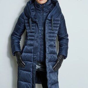 Tahari Casey Black Hooded Puffer Long Coat Jacket with Zip Vest. Sz: Small