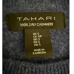 Wrap yourself in the luxurious warmth of the Tahari Cashmere Sweater, a timeless addition to your wardrobe. Crafted from 100% cashmere, this pullover offers unparalleled softness and comfort. The classic crew neck and long sleeves make it an ideal choice for cooler weather, ensuring both style and ease. Available in a soothing blue shade, this size small sweater fits true to size, designed for a regular fit. It's a versatile piece that pairs effortlessly with your favorite jeans or skirt, making it a must-have for any fashion-conscious individual seeking a blend of elegance and casual chic.