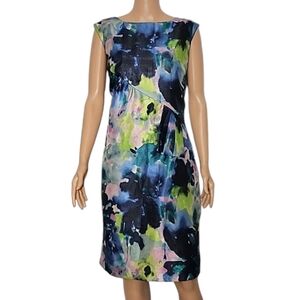 Tahari Cherry Red Gold Faux Belt Sleeveless Office Work Classic Sheath Dress 4