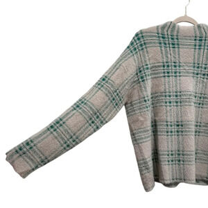 Tahari Chunky Insanely Soft Plaid Fuzz Sweater Holiday Casual Beige Green Sz XL