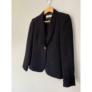 Tahari Classic Career Black Blazer Jacket Petite SZ 0P Single Gold Button #0609