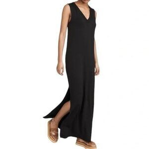 Tahari Classic Casual Elegance Black Sleeveless Side Slits Carefree Maxi Dress