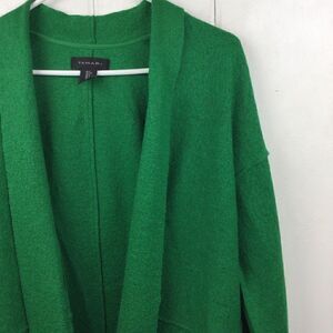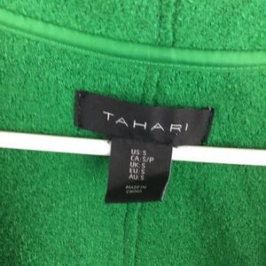 Tahari Clover Green Wool Open Front Jacket/Cardigan. Size - Small. 53% wool, 47% viscose. Great condition with no holes or stains. A perfect jacket for Spring or Easter or those windy days. (Jacket does not have a lining and does not have pockets.)