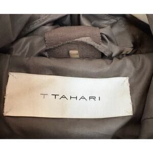 Tahari Coat Womens S Duck Down Long Zip Front Chocolate Brown Puffer Hooded