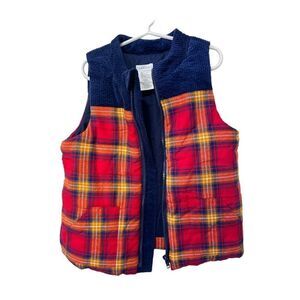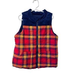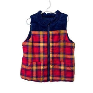 Tahari Colorblock Red Plaid Full Zip Child's Cotton Puffer Vest Unisex Size 7
