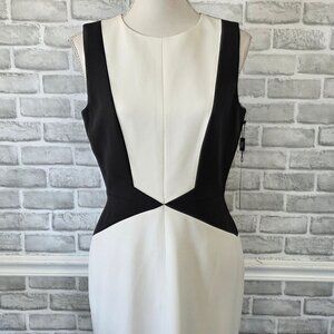 Tahari Colorblock Stretch Ponte Dress NEW 6 Structured Career Classic Black Whit