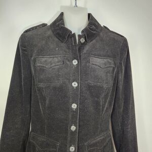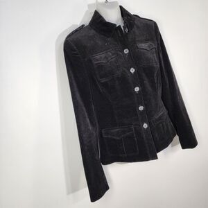 Tahari Corduroy Jacket Womens Size 4 Black Pockets Button Up Retro Epaulets