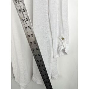 Tahari Coverup White Linen Long Sleeve Open Front Hooeded Cardigan Size M