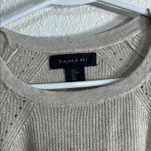 Tahari Cream Linen Blend Crew Neck Sweater Knit Casual Large