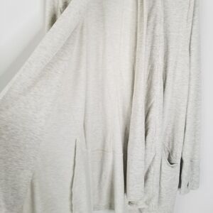 Gently used Tahari Open Front Cardigan in a size Small. Color is a gray/cream blend.