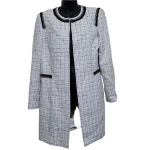 Tahari Cream and Black Tweed Open Front Women's Jacket Sz 12