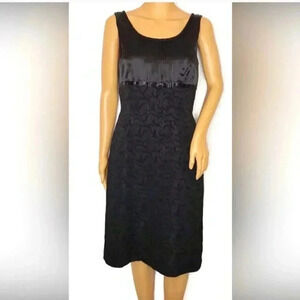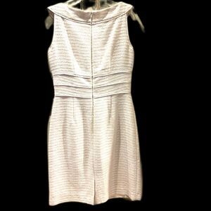 Tahari Arthur S Levine fully lined cream color dress with gold metallic accents. Perfect for festive occasions or when you prefer a bit of sparkle. Size 6 dress measures approx 19" pit-to-pit/36" long and 30" waist. Zip back/fully lined.