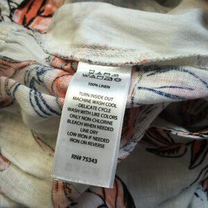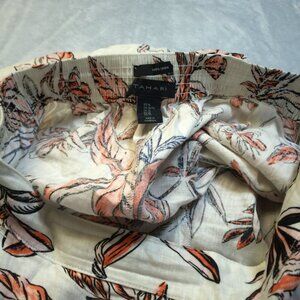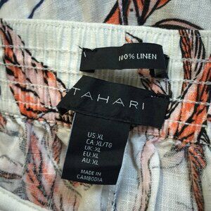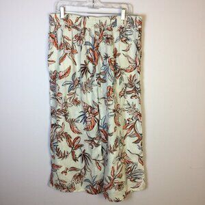 Tahari Crop Pants XL Women White Orange Floral 100% Linen Wide Leg Pull-on Beach