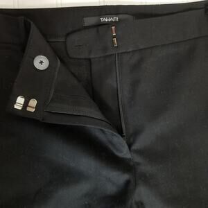 Excellent used condition, no holes tears snags or stains. Tahari black cropped pant, faux back pockets, zip front and hook and bar closure, belt loops, elastic side gussets, split seam leg