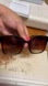 Tahari sunglasses with a dark brown frame. Offers 100% UV protection. Gold tone accents.