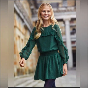 Tahari Deep Dark Green Polka Dot Dress Set Girls Size 5 New with Tags