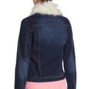 Tahari Denim Trucker Jacket with Detachable White Faux Fur Collar Size S* wom721