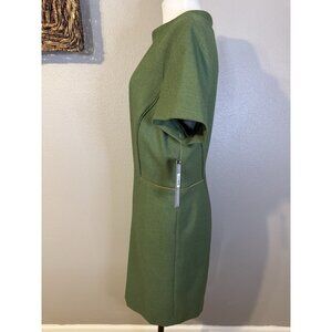 Tahari Dress 18 Green Mock Neck Gold Zipper Trim Short Sleeve Career Church NEW