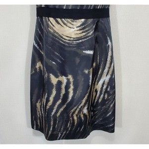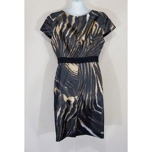 Tahari Dress 8 Black Gold Animal Print Sheath Cocktail Party Cap Sleeve Zip