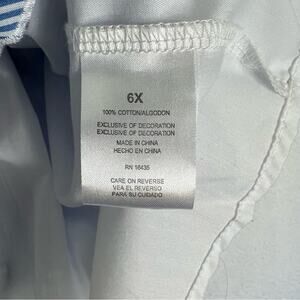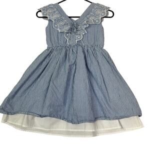 Tahari Dress Girls 6X Blue and White Pinstripe Ruffle Eyelet Embroidered