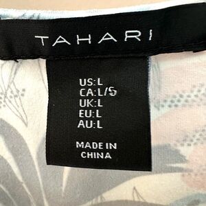 Tahari Dress Lg Sleeveless Pullover Midi Stretchy Tropical Palm Leaves Hawaiian