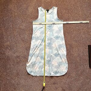 Large midi to maxi dress pink & blue tropical palm leaves.