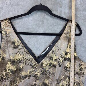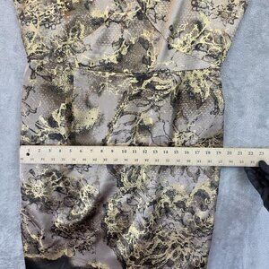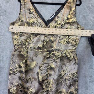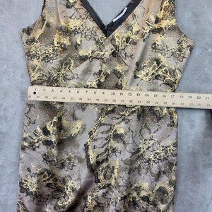 Tahari Dress Womens 16 Gold Black Metallic Jacquard V Neck Sleeveless Sheath