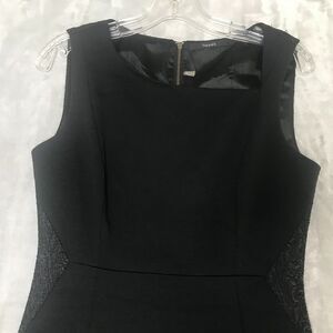 Tahari Dress Womens 6 Black Sheath Asymmetric Collar Textured Illusion Waist