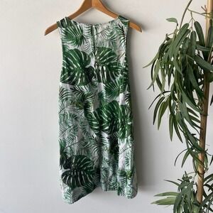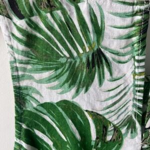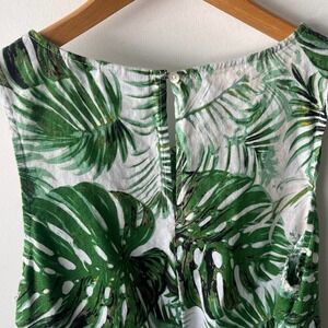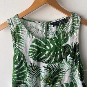 Tahari Dress Womens Medium White Green Tropical Boho Palm Linen Summer