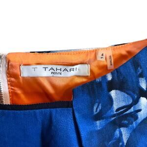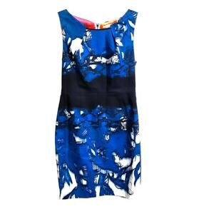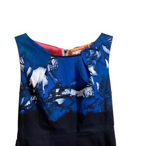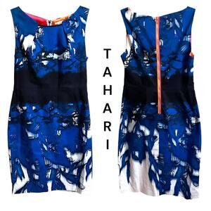 Tahari Dress Women's SZ 4 Sleeveless Sheath Blue Black Colorful Back Zipper