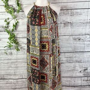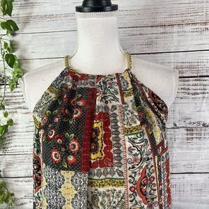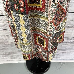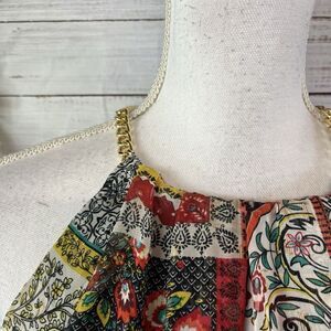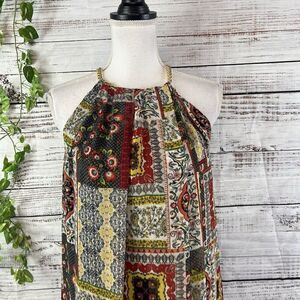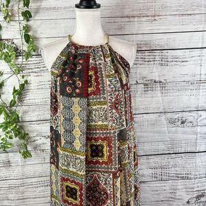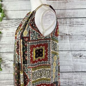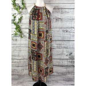 Tahari Dress size Small Orange Blue Gold Floral Paisley Boho Sheer Trapeze Boho
