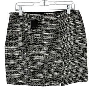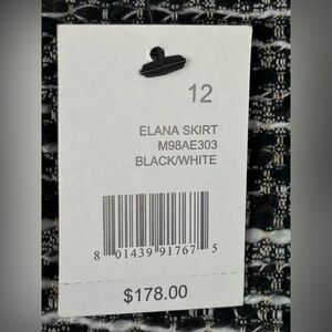 Tahari Elena NWT Woven Tweed Skirt Black White Size 12 Contemporary Office