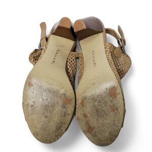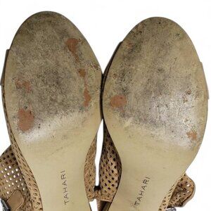 Tahari Eloise Perforated Suede Slingback Heels Women's Tan Peep Toe Bootie 7