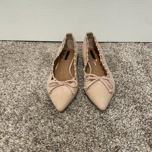 Tahari Elon Ballet Flat Blush Suede Pointed Toe Bow Accent Size 6