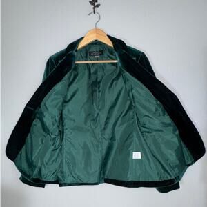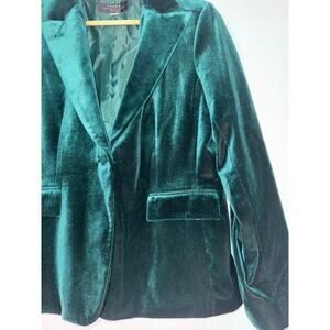 Tahari Emerald Green Velvet Blazer Women 10P Holiday Party Black Tie Suit Jacket