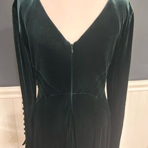 Luxurious emerald velvet dress with long sleeves. Perfect for formal events. Elegant and sophisticated design.